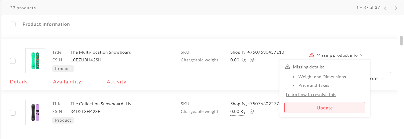 Note: You can edit all product attributes except for the ESIN.