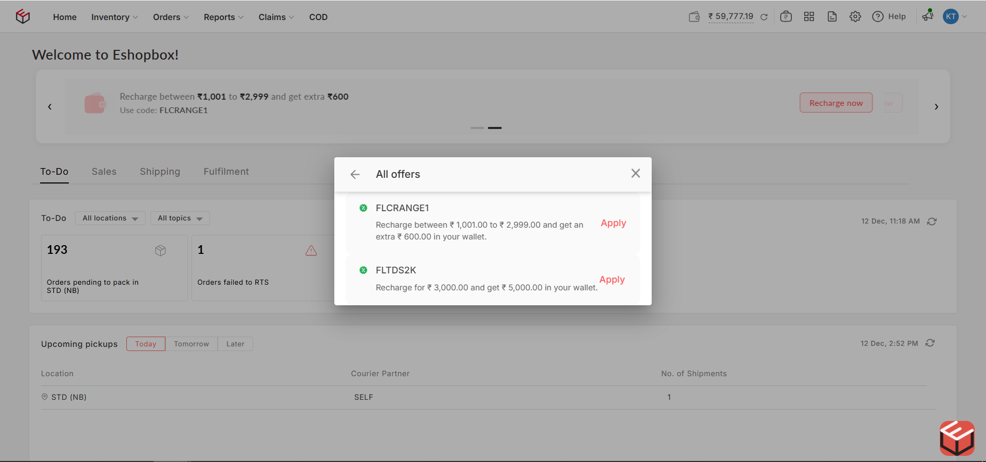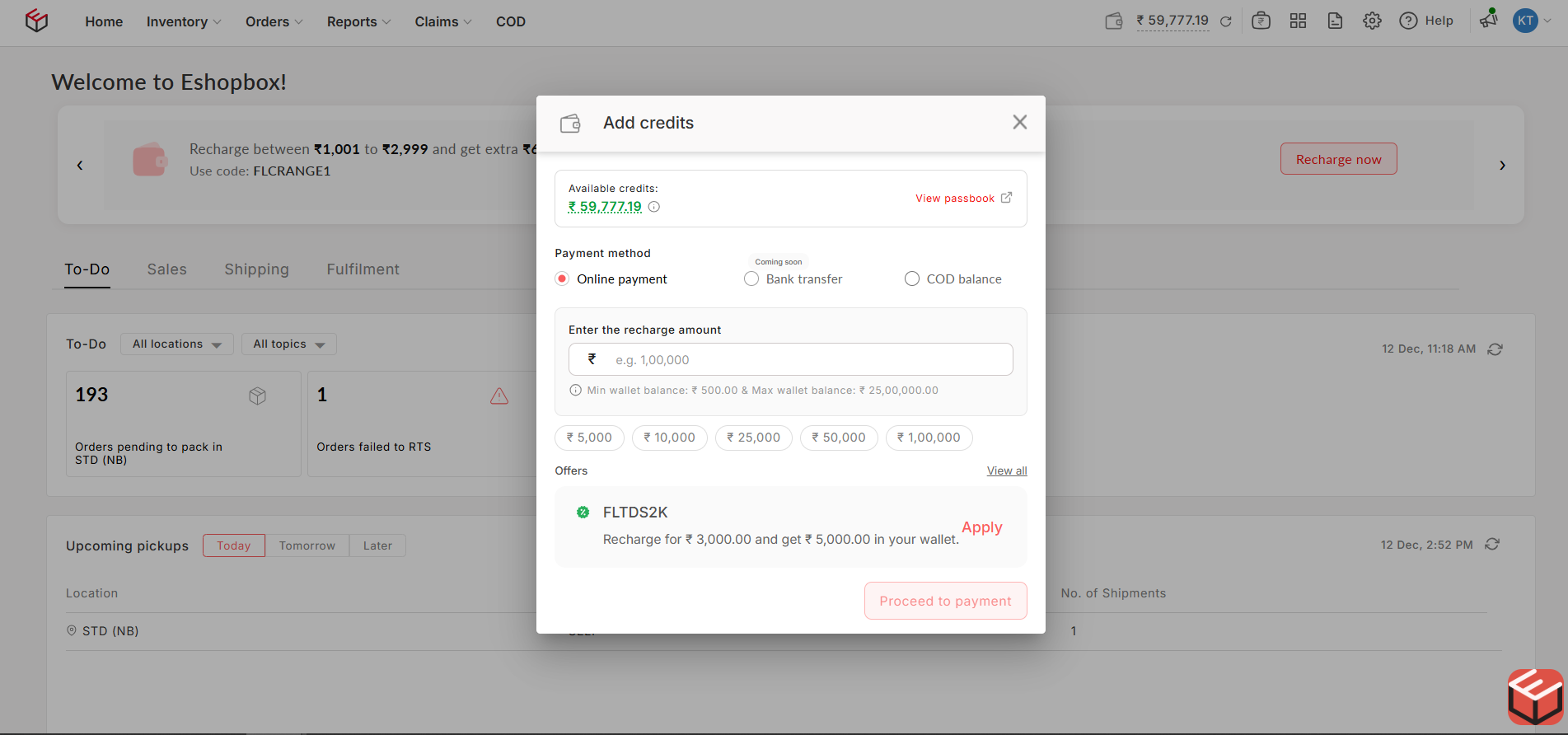 At its core, it's a promotional incentive provided by Eshopbox. A wallet recharge offer gives you extra bonus money when you recharge a specific amount to your Eshopbox wallet.