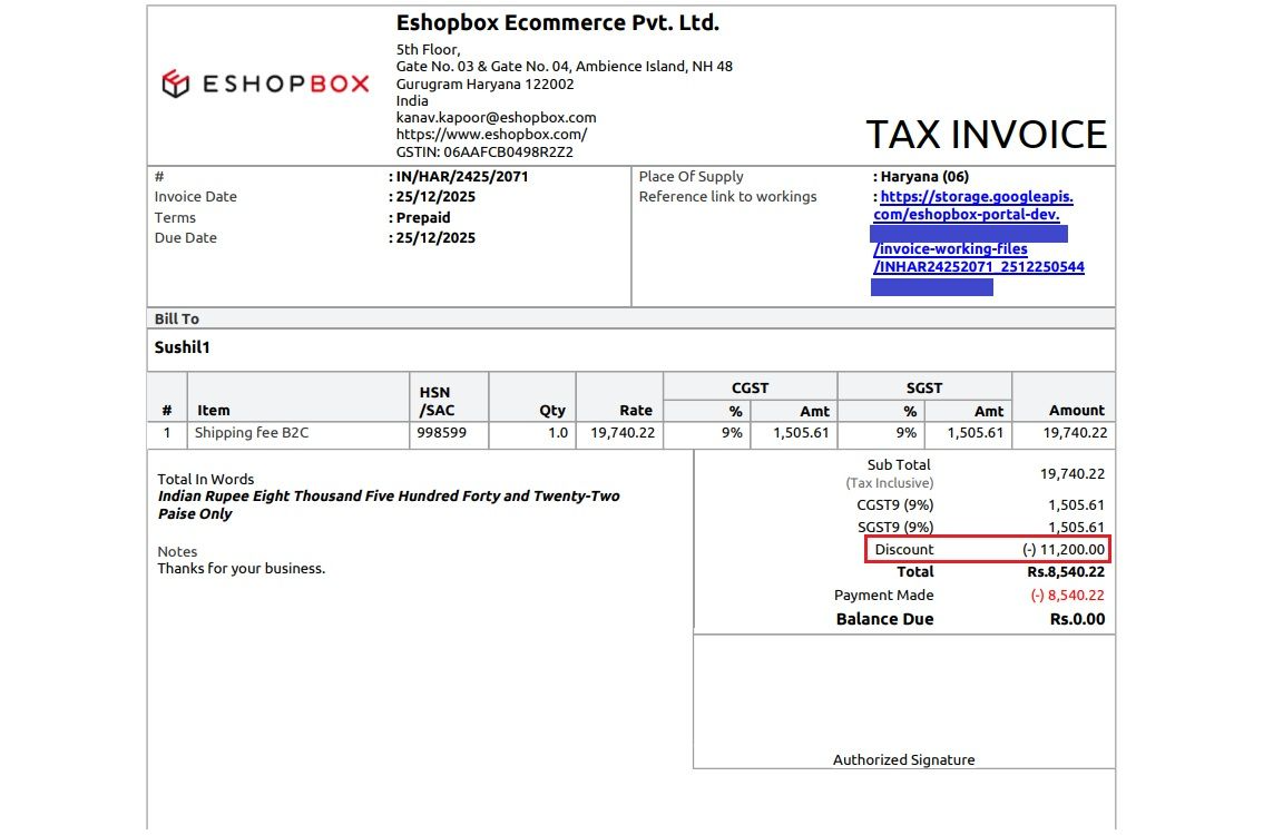The offer bonus amount will be displayed as a discount in invoices. This helps you clearly see how much benefit you gained from the offer.
