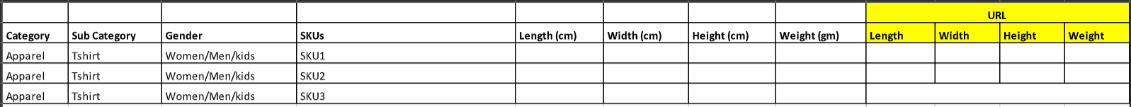 Provide the weight and dimensions for each of the three products to Eshopbox for category verification.